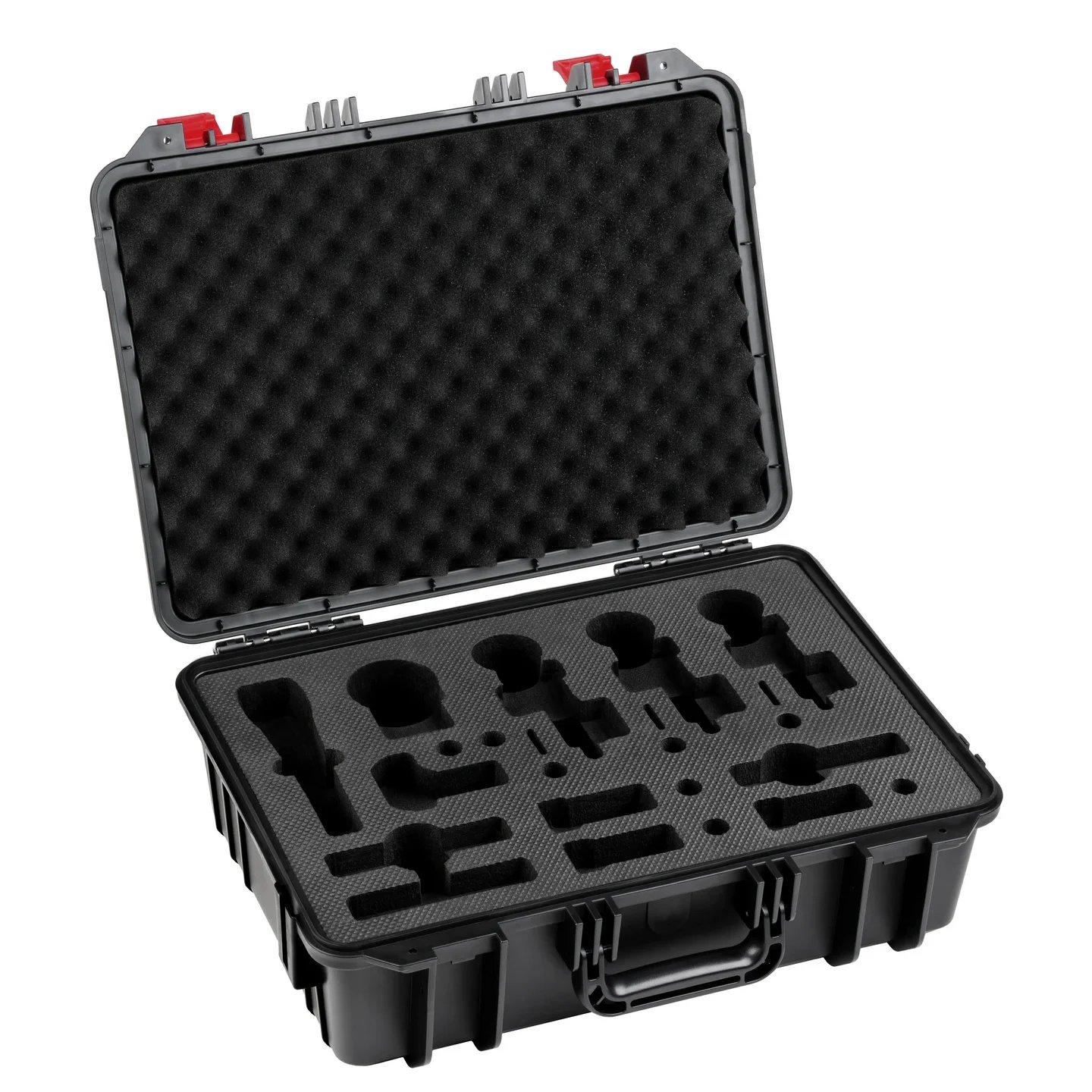 The V PACK CASE is the perfect accessory for your sE V SERIES Drum Microphones. The structured foam inner lining provides perfectly-fitted spaces for one V KICK, three V BEATS, three V CLAMPS, a V7 X, and three small-diaphragm condensers like the sE8 or sE7 – as well as slots for all of their associated mic clips. Made from robust plastic, the case is perfect for taking your mics on the road or storing them in your studio.